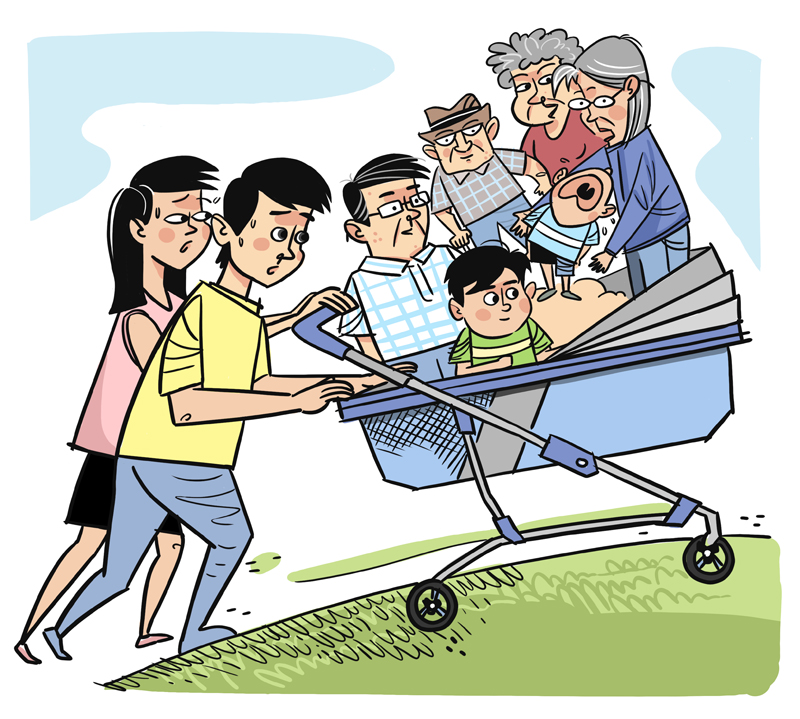 The family planning policy that now allows all couples to have two children will not change the trend of the rising aging population. In 2016, the number of people aged 60 or above accounted for 16.7 percent of the total population, and the ratio is likely to have increased to 17.3 percent last year.
